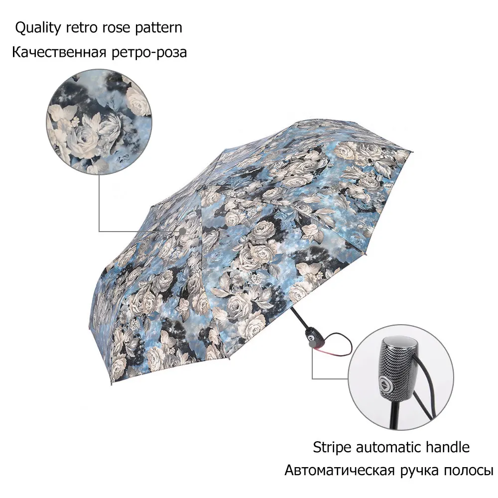 . (Zniżka 0%) Tanie TOPX silny wiatr oszczędny Retro wzór piękny obraz kobiet różowe 3 składany parasol automatyczny słoneczne i deszczowe parasol Cena.