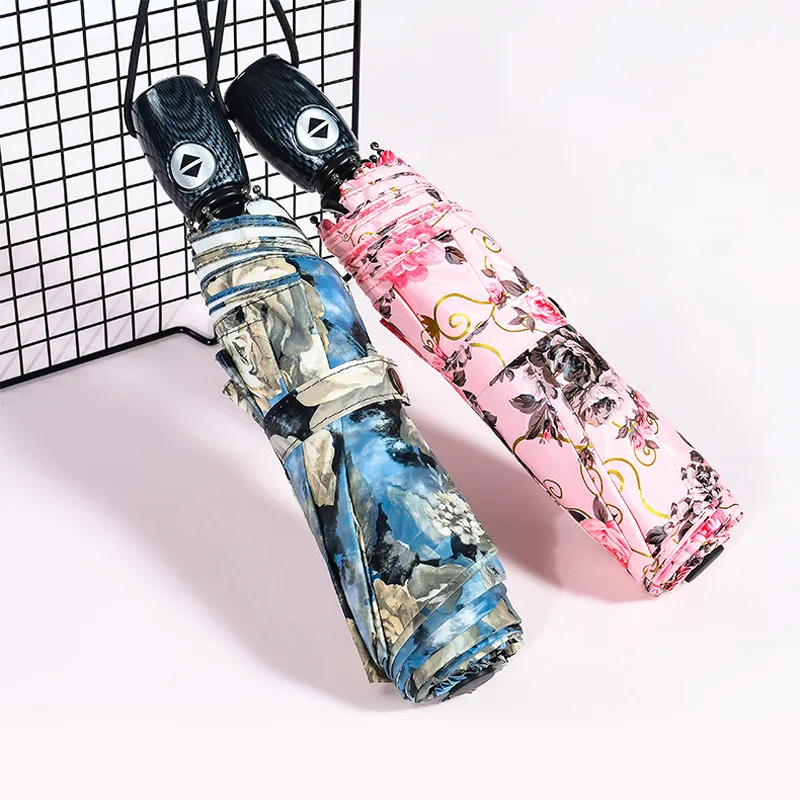 Special Offer TOPX silny wiatr oszczędny Retro wzór piękny obraz kobiet różowe 3 składany parasol automatyczny słoneczne i deszczowe parasol Discount 0% Today!