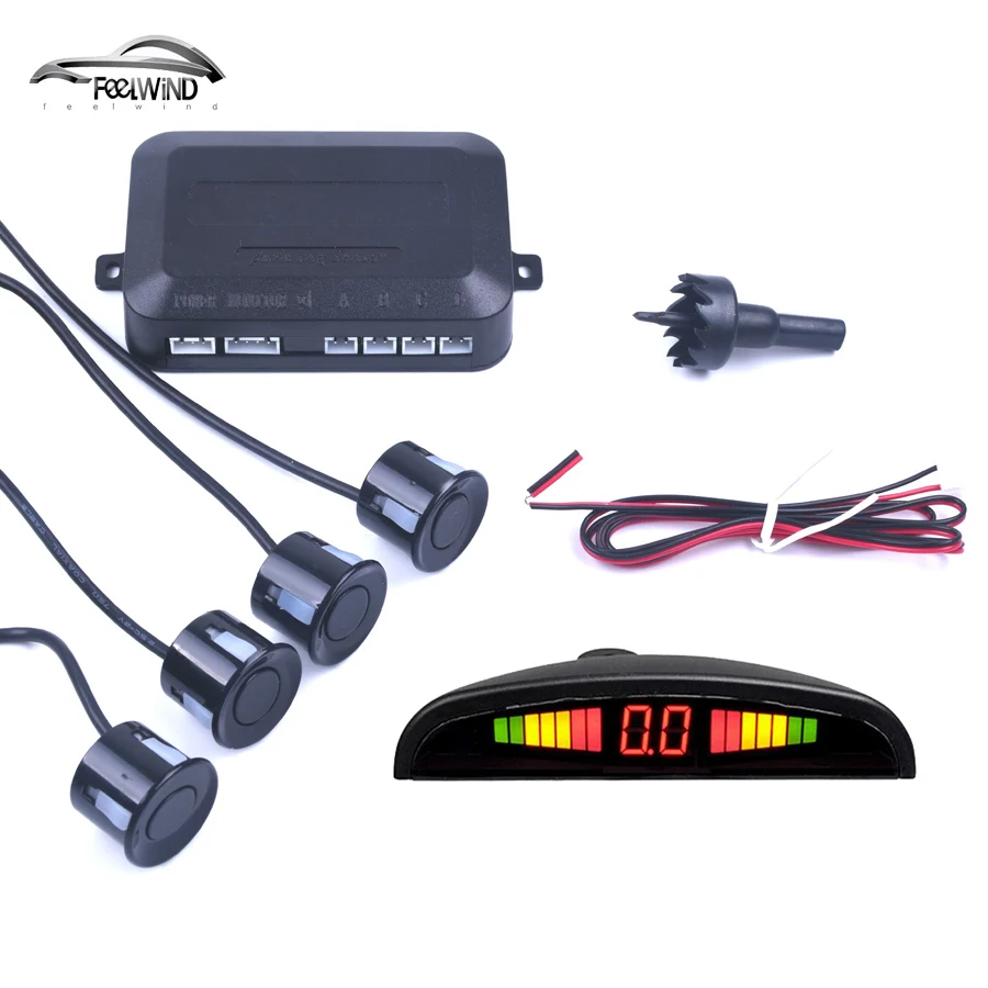 . (Zniżka 12%) Tanie Samochód czujnik parkowania LED z 4 czujniki odwrotnej Backup radarowy do parkowania samochodu monitora detektor System podświetlenie wyświetlacza Cena.