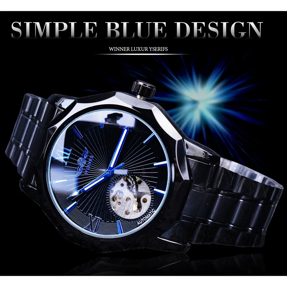 Special Offer Zwycięzca 2019 czarny ze stali nierdzewnej modne niebieskie ręce mężczyzna mechaniczny zegarek Top marka luksusowe nieregularne kształt Dial świetliste dłonie Discount 34% Today!