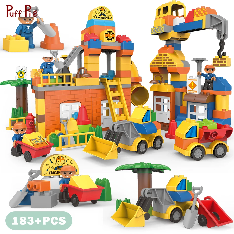 Special Offer 183 sztuk duży rozmiar miasto budowa DIY do koparek pojazdów wyburzyć Building Blocks kompatybilny Legoingly zestaw Duplo klocki dla dzieci Discount 37% Today!