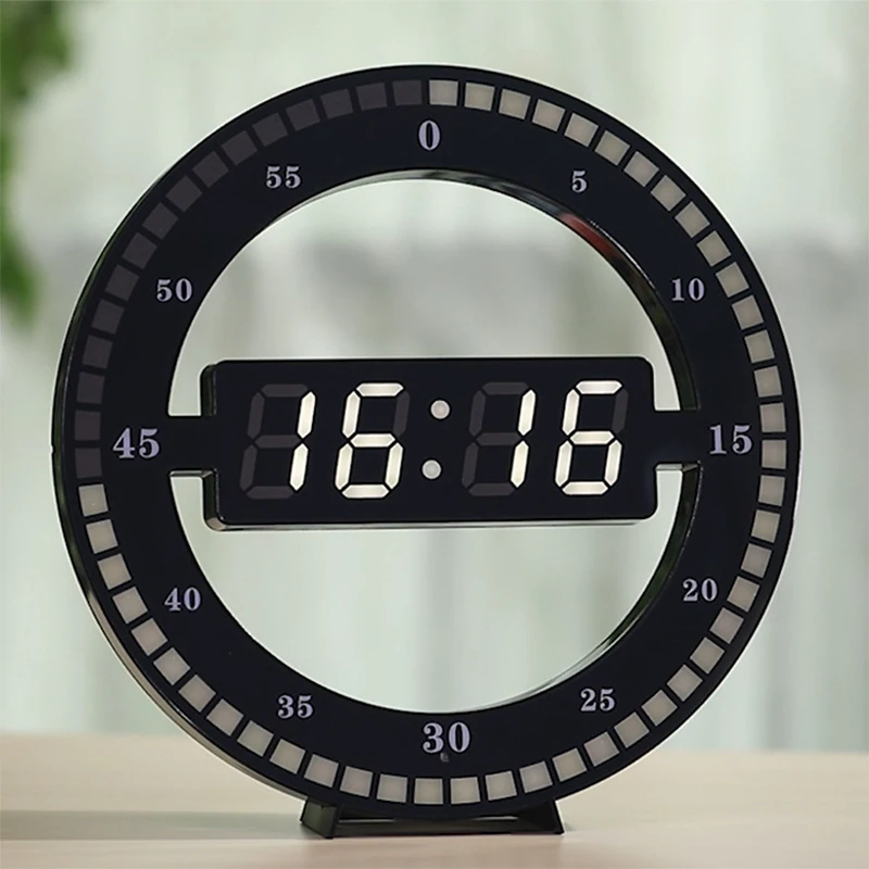 . (Zniżka 40%) Tanie 3D LED cyfrowa ściana zegar elektroniczny noc blask okrągłe zegary ścienne czarny automatycznie dostosuj jasność LED zegar na pulpicie Cena.