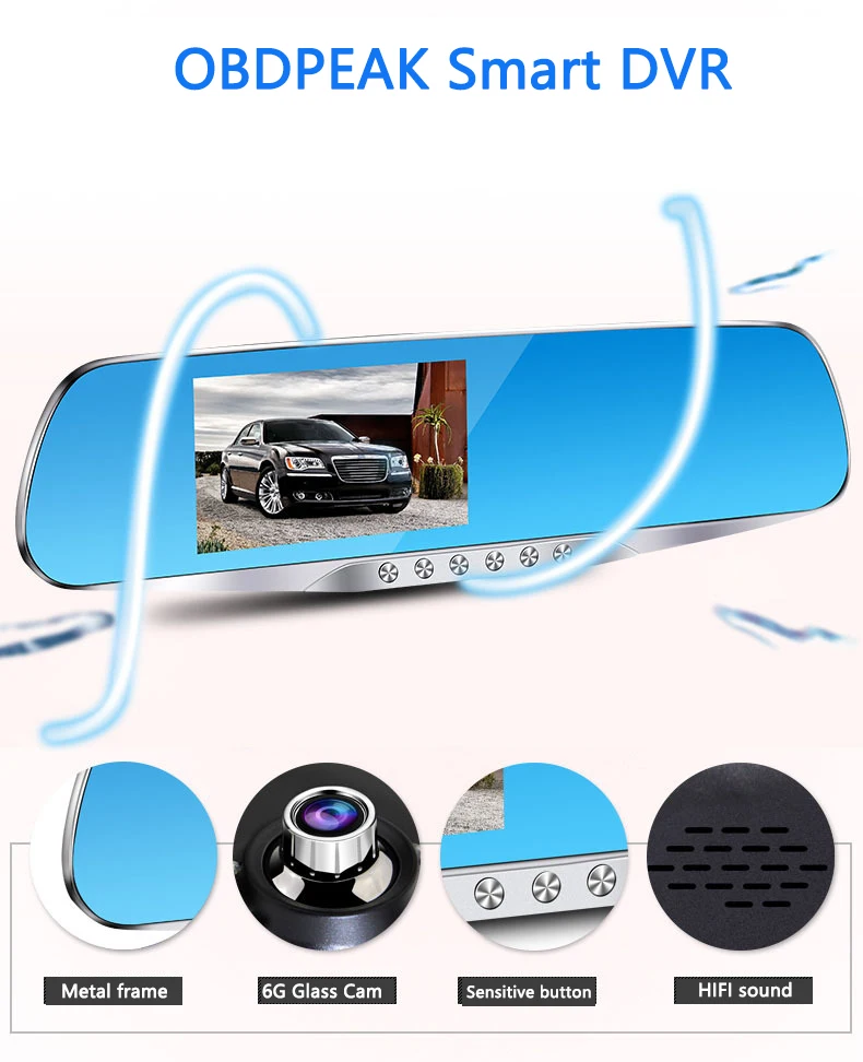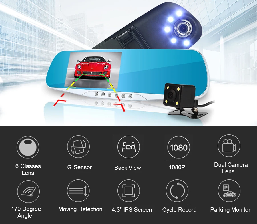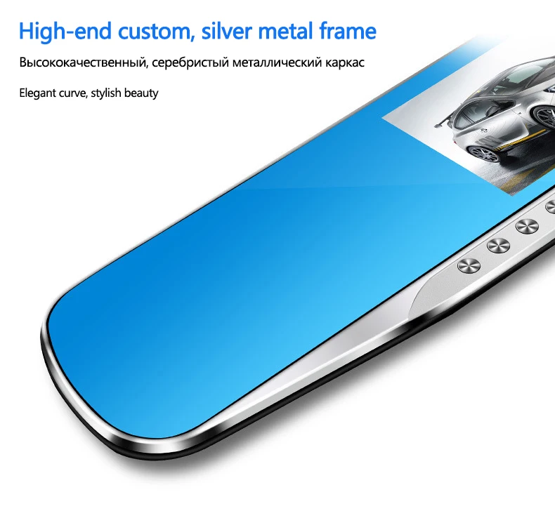 Product Name: Wideorejestrator samochodowy 4.3 Cal 5 Led oświetlenie samochodu lusterko wsteczne z widokiem z kamery z tyłu czujnik G srebrny granicznej kamera na deskę rozdzielczą podwójny obiektyw Auto rejestrator