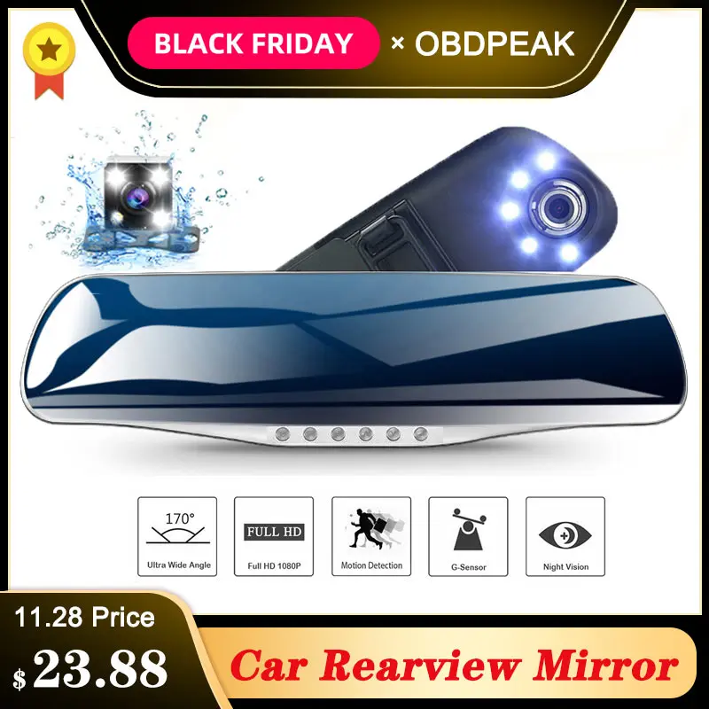 Special Offer Wideorejestrator samochodowy 4.3 Cal 5 Led oświetlenie samochodu lusterko wsteczne z widokiem z kamery z tyłu czujnik G srebrny granicznej kamera na deskę rozdzielczą podwójny obiektyw Auto rejestrator Discount 50% Today!