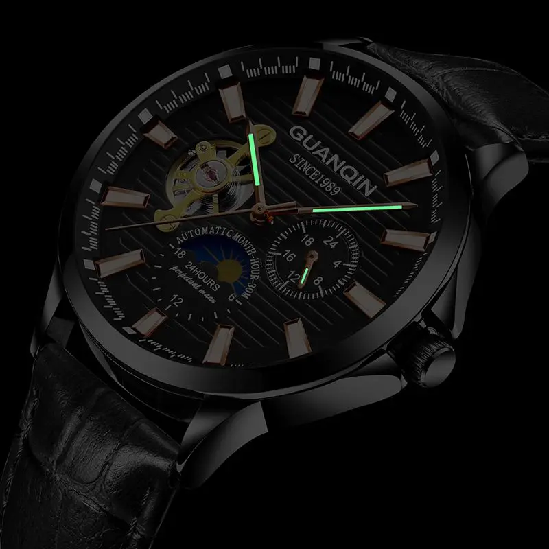 . (Zniżka 91%) Tanie GUANQIN 2018 zegarek mężczyźni świecący zegar mężczyźni automatyczny wodoodporny mechaniczny skórzany różany złoty szkieletowy biznes relogio masculino Cena.