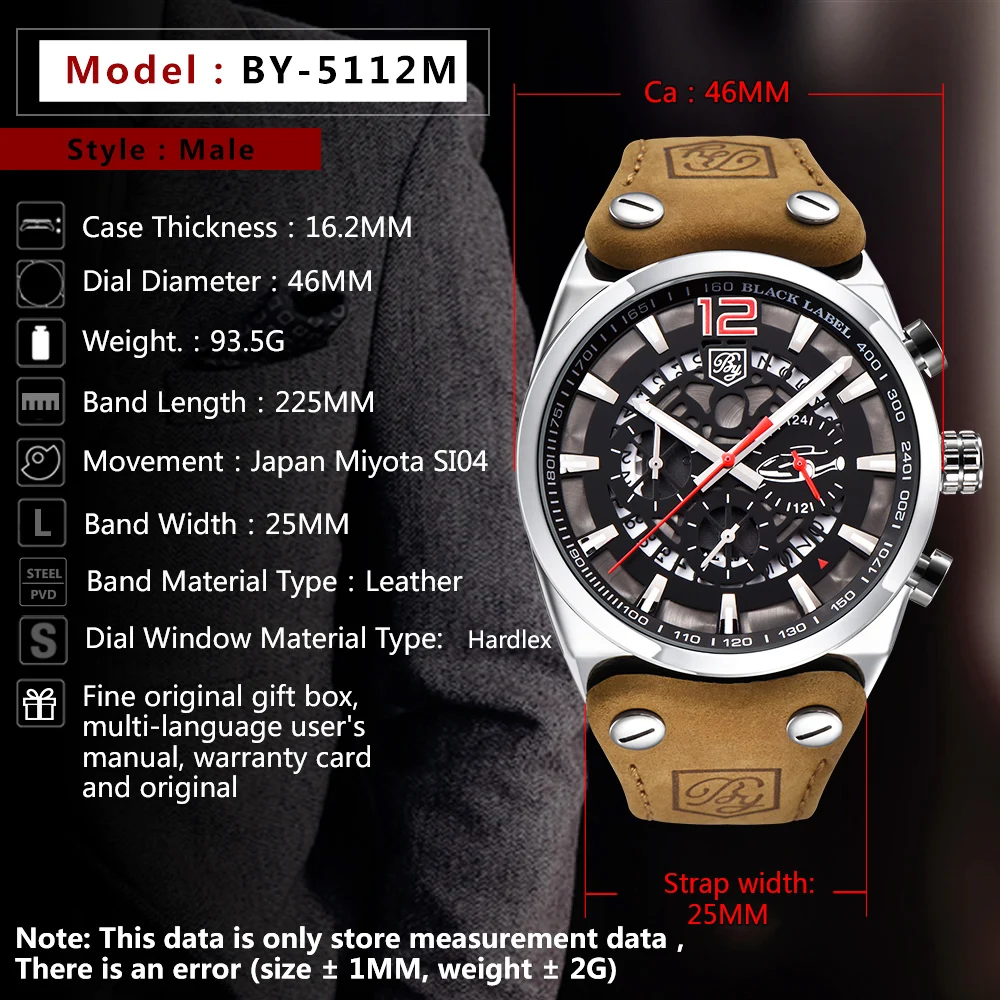 Product Name: BENYAR męskie zegarki Top luksusowy chronograf Sport męskie zegarki moda marka wodoodporny zegarek wojskowy Relogio Masculino BY 5112M