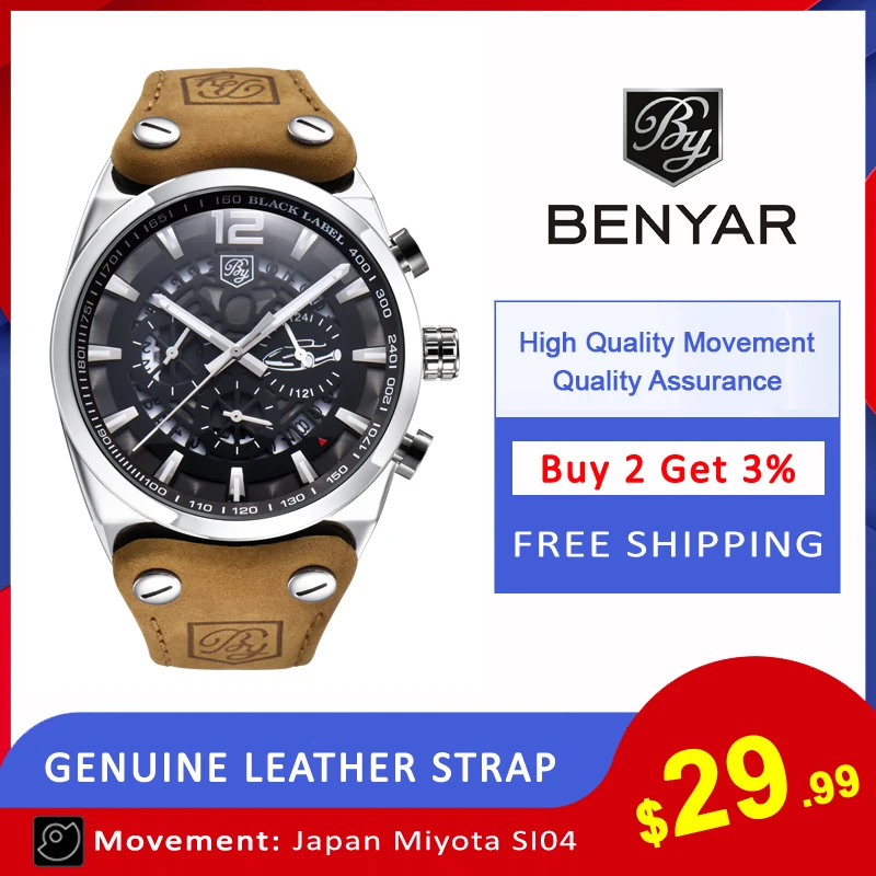 Special Offer BENYAR męskie zegarki Top luksusowy chronograf Sport męskie zegarki moda marka wodoodporny zegarek wojskowy Relogio Masculino BY 5112M Discount 48% Today!