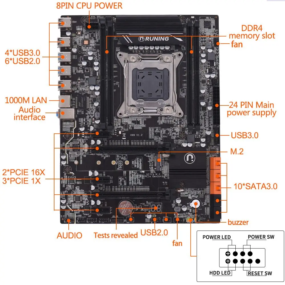 Product Name: Nowa płyta główna pulpitu X99 V1.2 DDR4 ATX LGA2011 cpmputer DIMM gniazda SATA 3.0 i USB 3.0