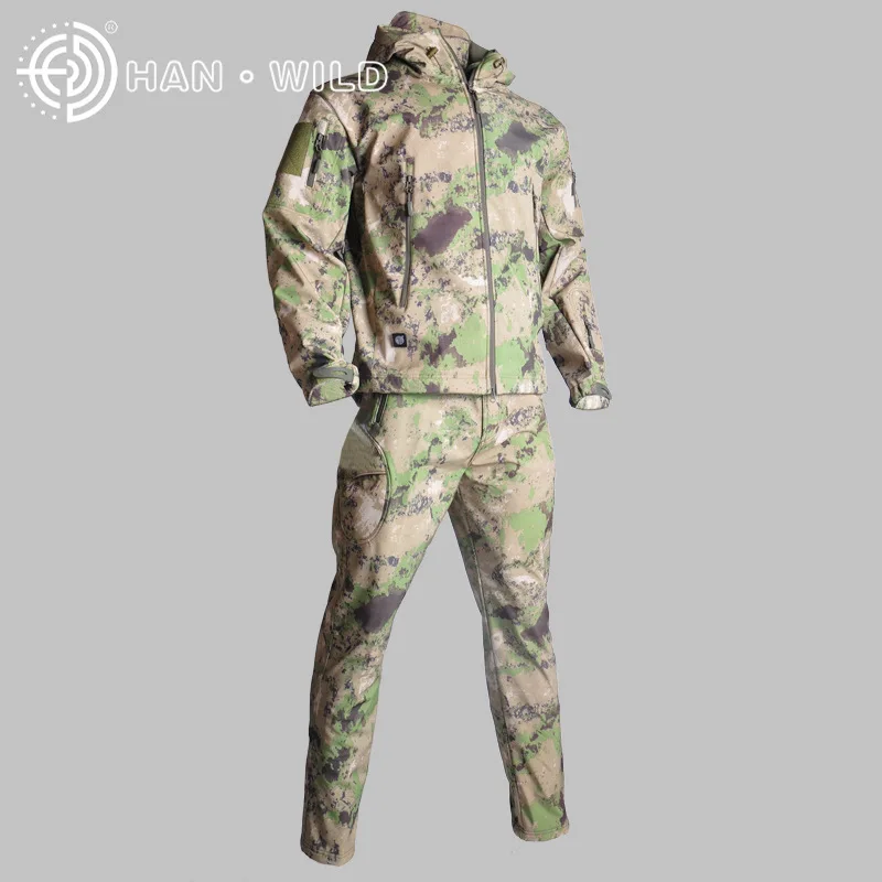 Product Name: TAD taktyczny mężczyźni Army polowanie piesze wycieczki wędkowanie odkrywania ubrania garnitur Camouflage skóry rekina wojskowy wodoodporna z kapturem kurtka + spodnie