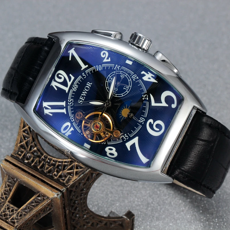 Special Offer SEWOR Classic Tourbillon Wrap męskie zegarki marki luksusowy zegarek automatyczny złota koperta zegarek męski z kalendarzem czarny zegarek mechaniczny Discount 50% Today!