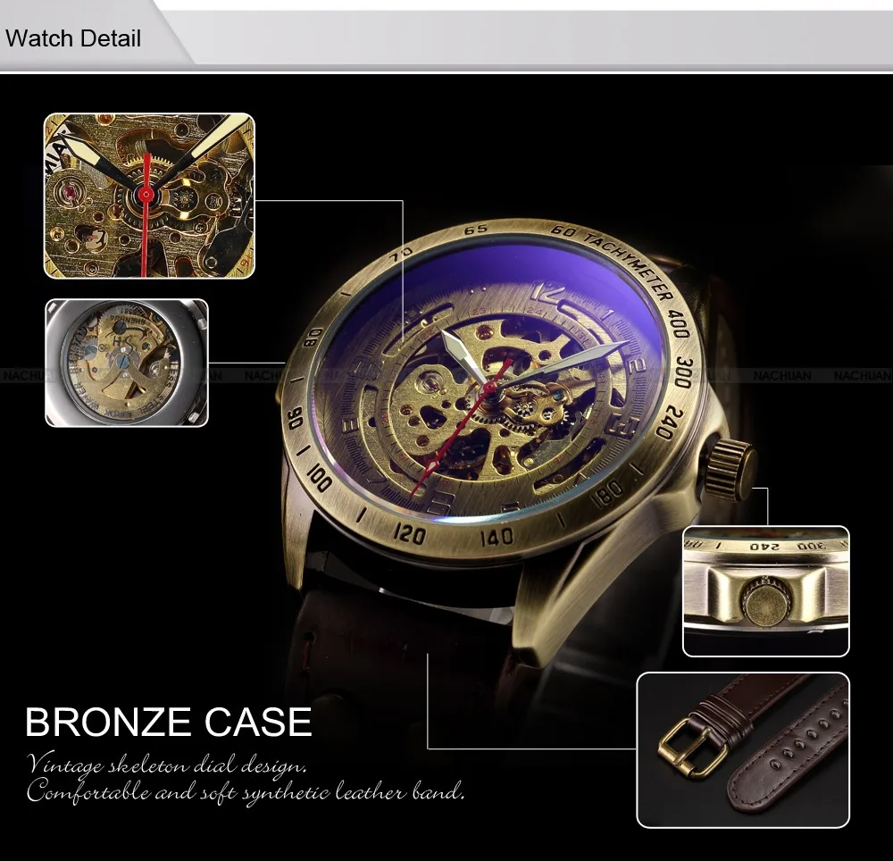 Product Name: Zegarki shenhua mężczyźni Retro skrzynia z brązu zegarek męski automatyczny zegarek mechaniczny szkielet skórzany Sport zegarek Relogio Masculino