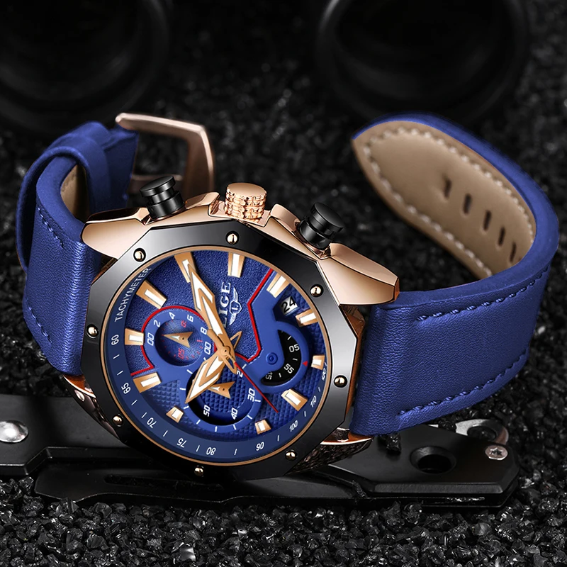 Product Name: LIGE zegarki męskie 2019 luksusowej marki mężczyźni wojskowy Sport zegar kwarcowy człowiek dorywczo skórzany zegarek wodoodporny Relogio Masculino