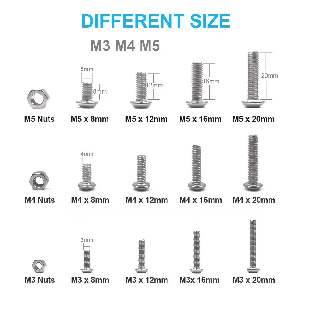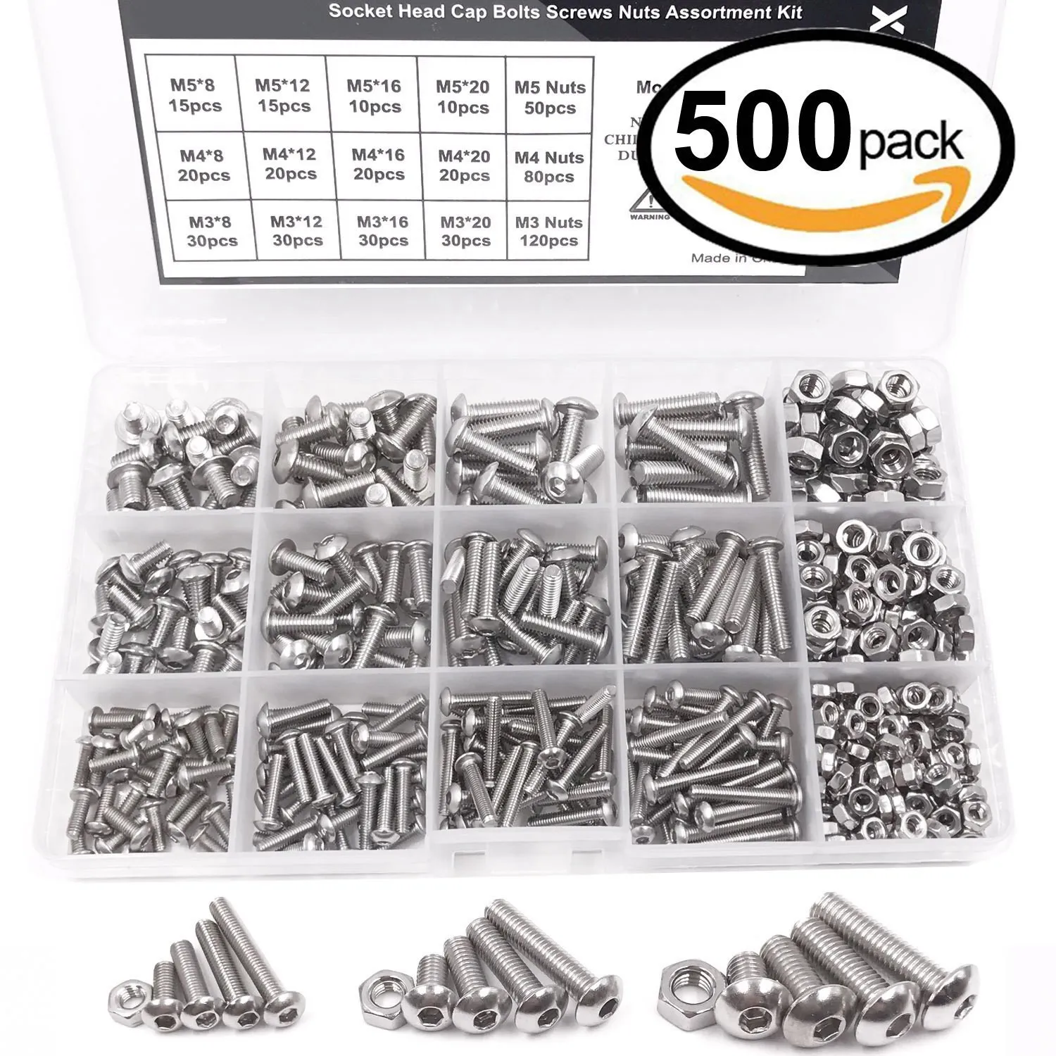 Product Name: WSFS gorąca 500 sztuk M3 M4 M5 A2 ze stali nierdzewnej ISO7380 z łbem śruby sześciokątne śruby z gniazdem sześciokątnym z nakrętkami asortyment zestaw
