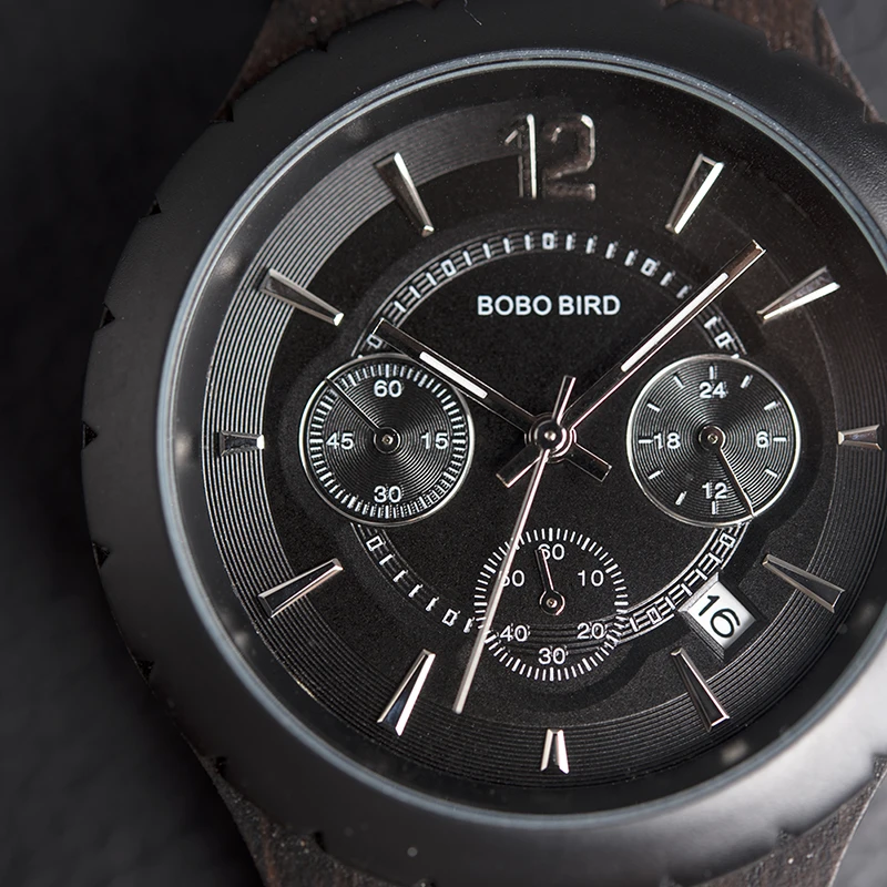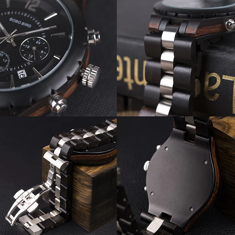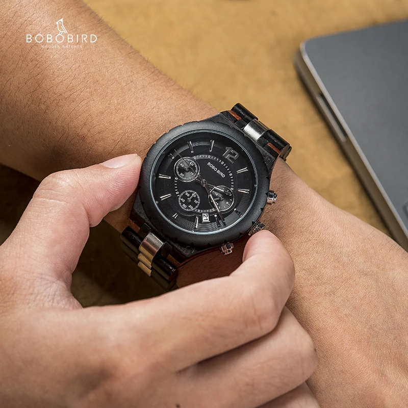 Product Name: BOBO ptak mężczyźni oglądać luksusowe eleganckie drewno Metal Chronograph Auto zegarki z datą reloj hombre prezent C hR22 Dropship