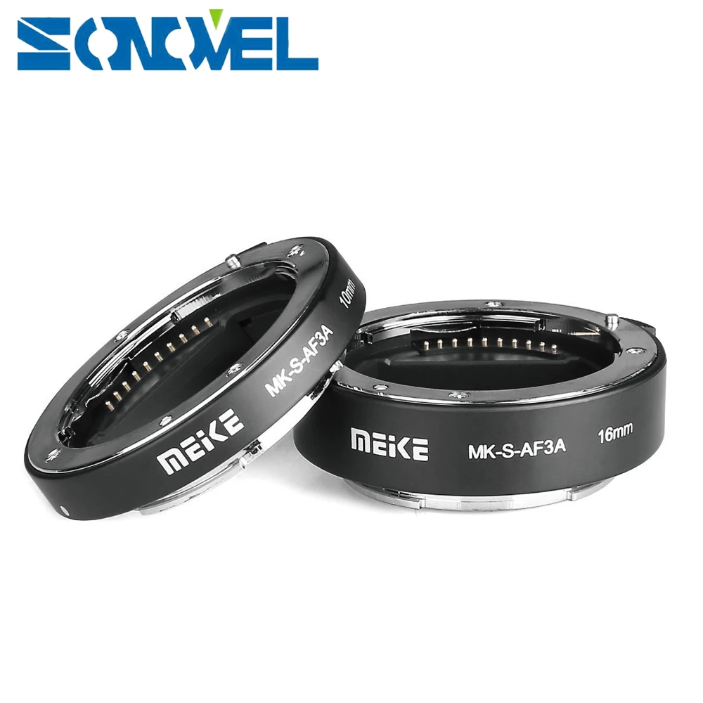 . (Zniżka 21%) Tanie Meike automatyczne ustawianie ostrości pierścienie pośrednie makro 10mm 16mm do montażu Sony E FE do montażu na A7SII A7R NEX F3 NEX 6 NEX 7 NEX 5T A6300 A6500 kamery Ceny.