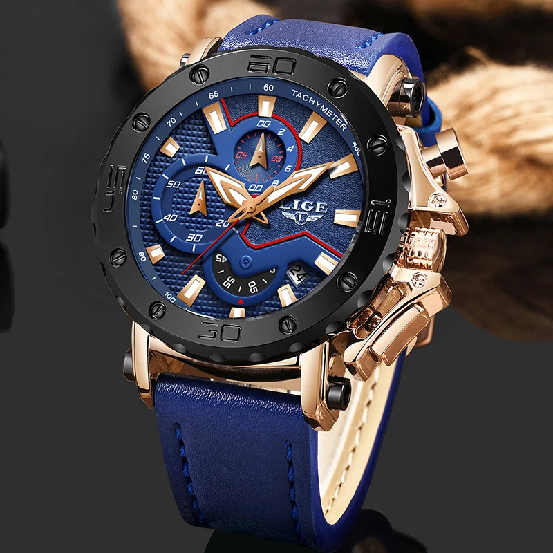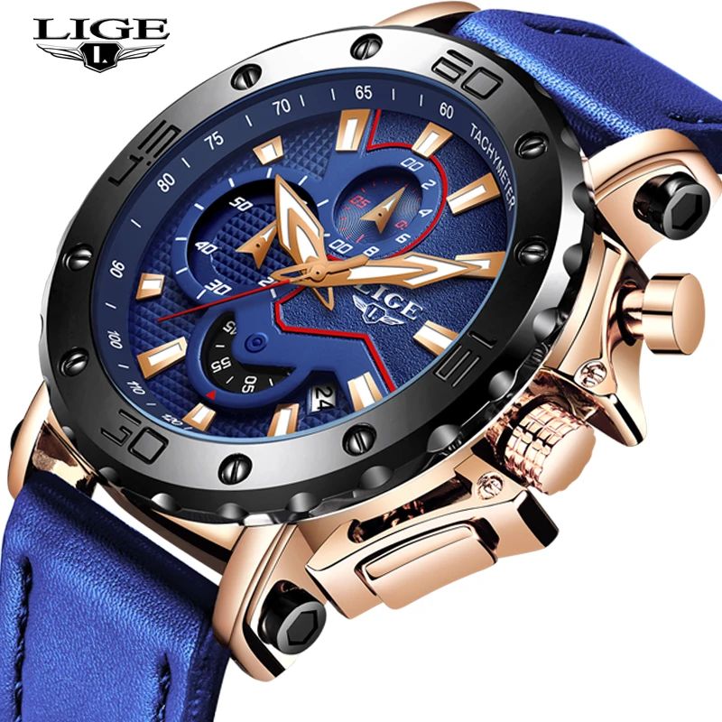 Product Name: LIGE nowe męskie zegarki wojskowe Sport zegarek mężczyźni Top marka luksusowe skórzany Chronograph wodoodporny zegarek kwarcowy zegar Relogio Masculino