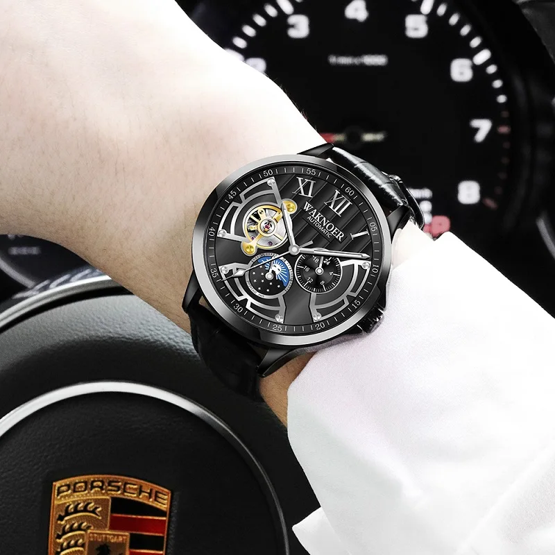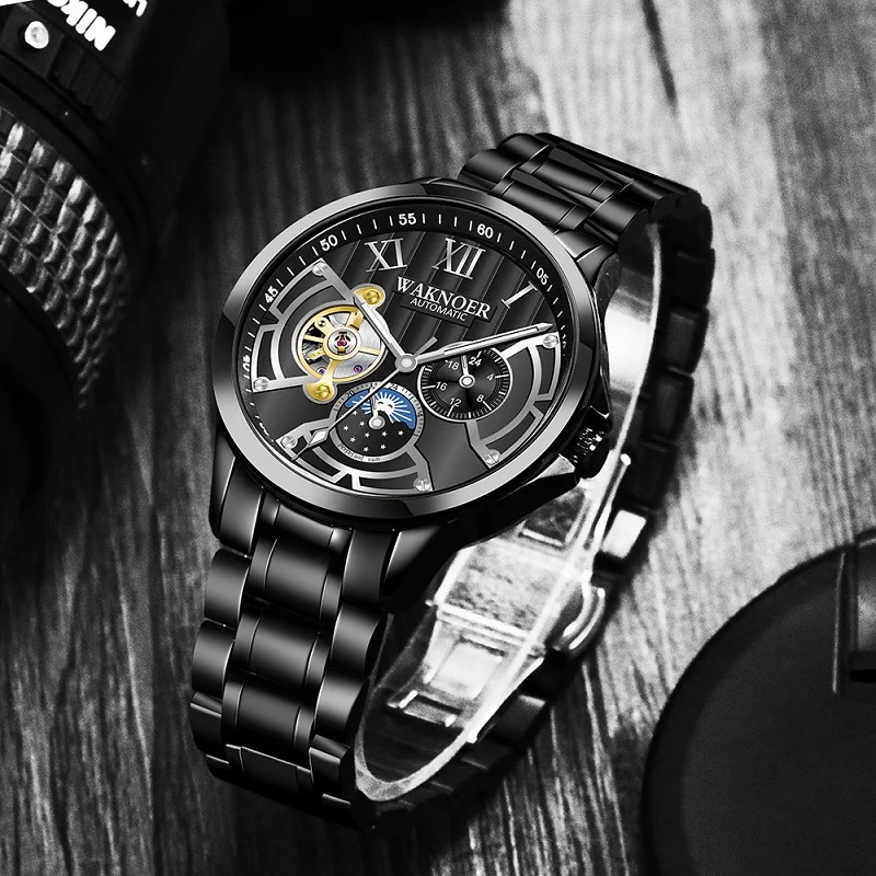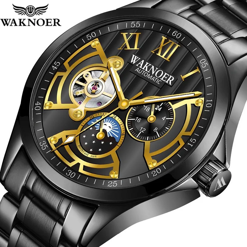 Special Offer WAKNOER Fashion zegarek biznesowy mężczyźni automatyczny świecący zegar mężczyźni mechaniczny zegarek z tourbillonem Top marka z pudełkiem Montre Homme Discount 49% Today!
