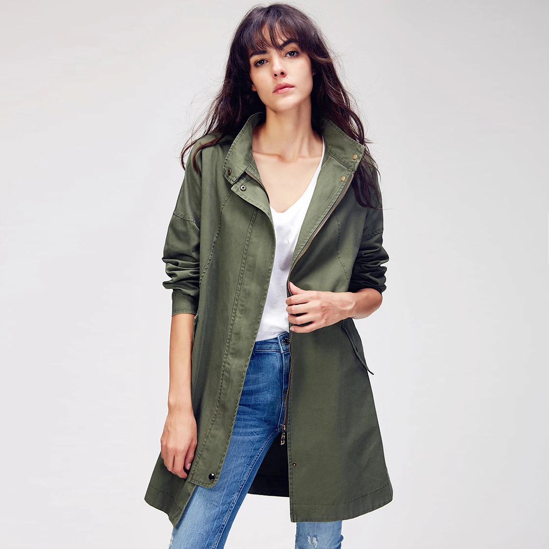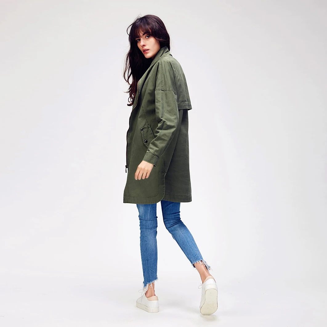 . (Zniżka 59%) Skup JAZZEVAR 2019 nowych kobiet na co dzień bawełna okopu płaszcz armia zielony odzież wierzchnia bawełna luźna odzież wysokiej jakości Najtaniej Cena.