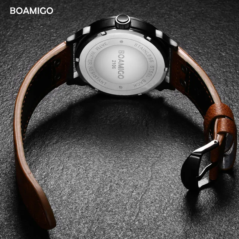 Special Offer Męskie zegarki moda męska sport zegarek kwarcowy marka boamigo podwójny czas zegarki na rękę z datownikiem skórzany pasek wodoodporny relogio masculino Discount 80% Today!