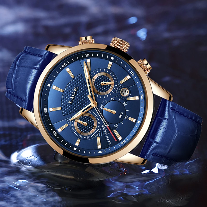 Special Offer LIGE nowi mężczyzna zegarek Top marka niebieska skóra chronograf wodoodporny Sport automatyczny data kwarcowe zegarki dla mężczyzn Relogio Masculino Discount 90% Today!