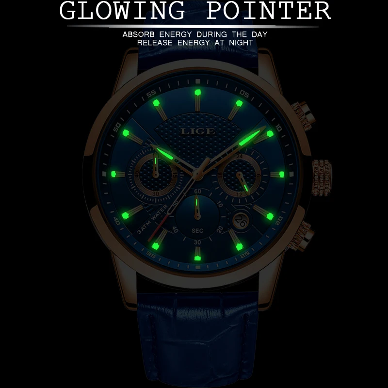 Product Name: LIGE nowi mężczyzna zegarek Top marka niebieska skóra chronograf wodoodporny Sport automatyczny data kwarcowe zegarki dla mężczyzn Relogio Masculino