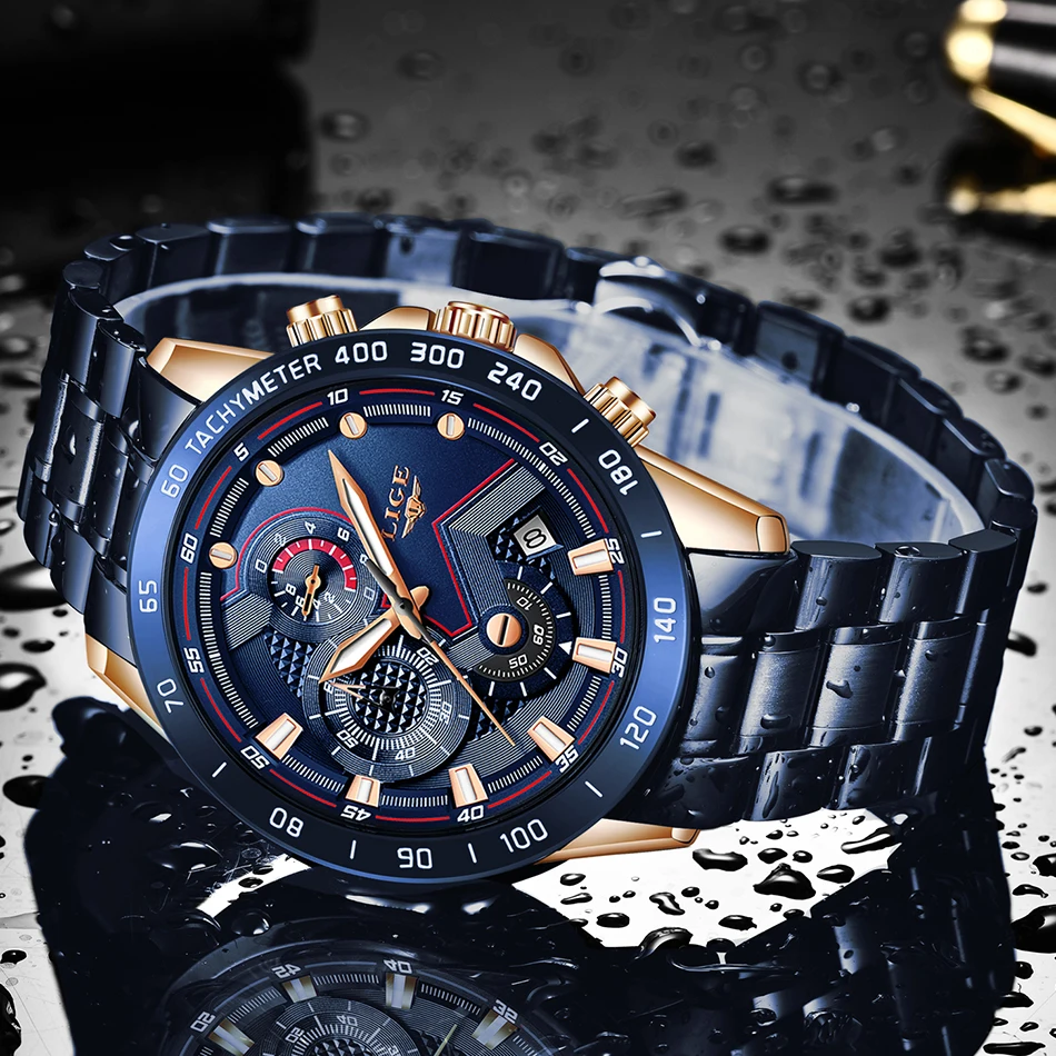 Product Name: LIGE męskie zegarki Top marka luksusowe ze stali nierdzewnej niebieski wodoodporny zegarek kwarcowy mężczyźni moda chronograf męski Sport zegarek wojskowy