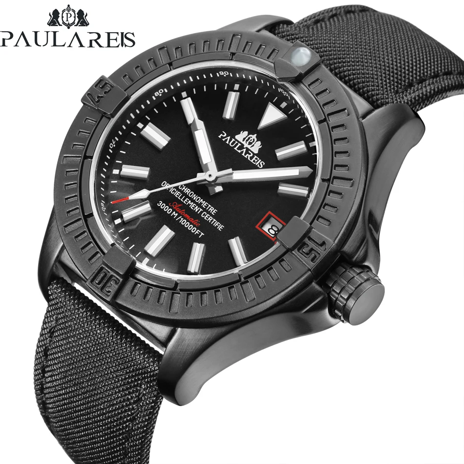Special Offer Mężczyźni automatyczny auto wiatr mechaniczne czarny ptak na płótnie styl prawdziwej skóry czarny niebieski skórzany data Luminous luksusowy zegarek Discount 32% Today!