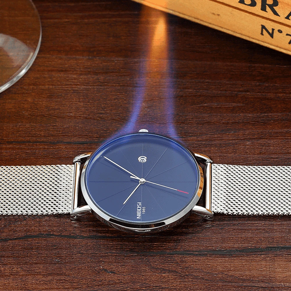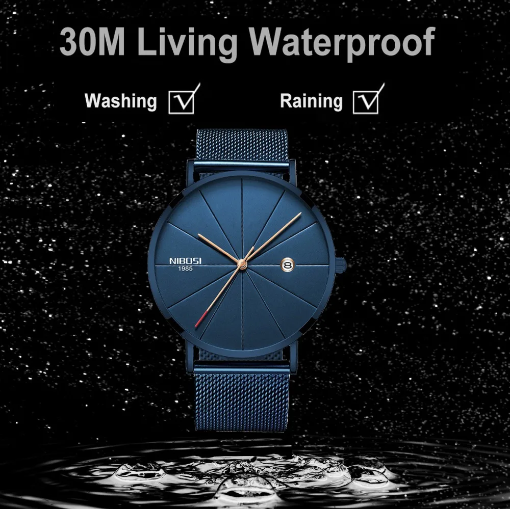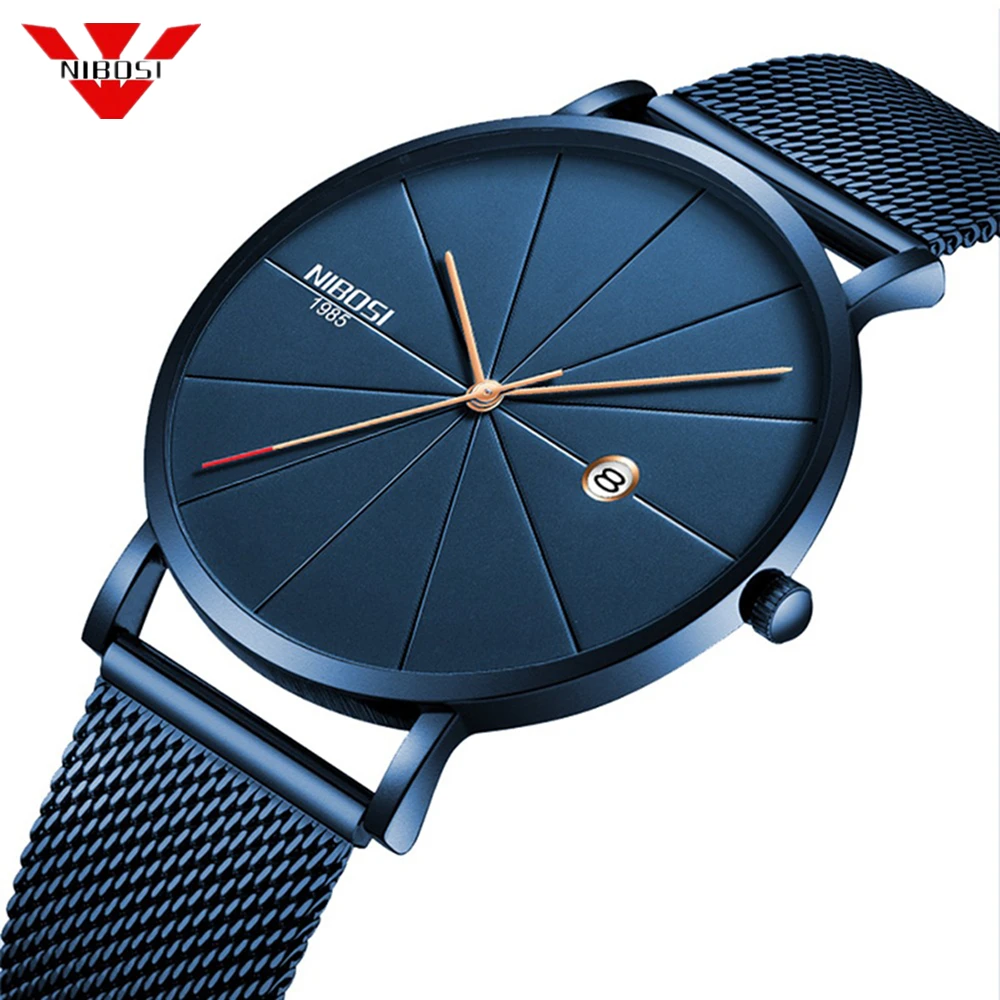 . (Zniżka 46%) Tanie NIBOSI proste męskie zegarki 2019 nowy typ wodoodporny luksusowy Ultra cienki Wrist Watch mężczyźni moda pasek milanese Relogio Masculino Cena.