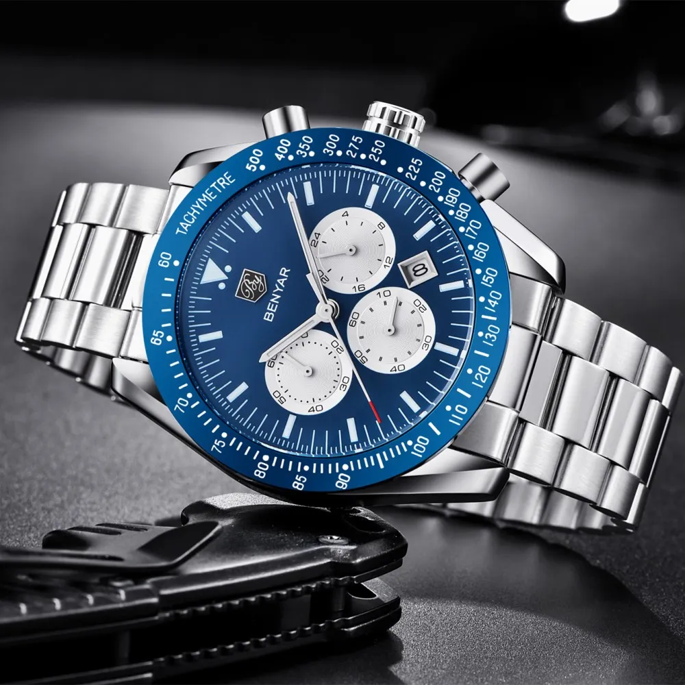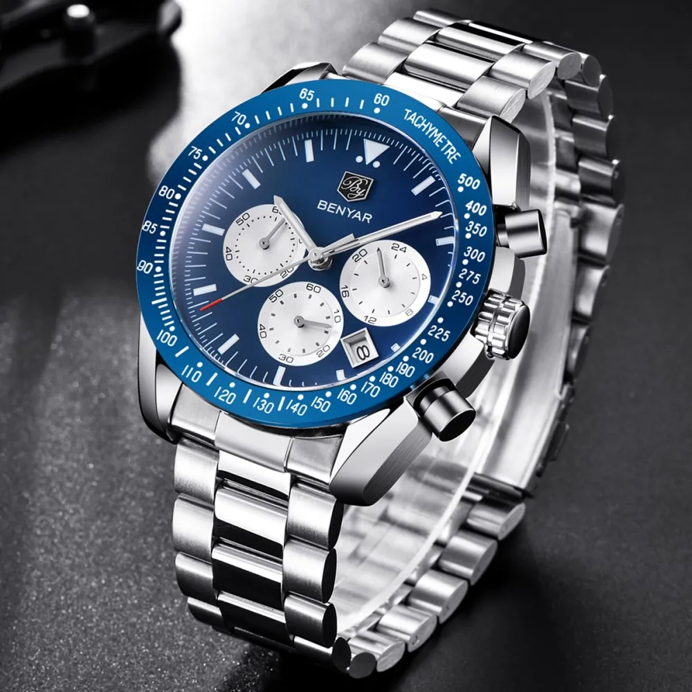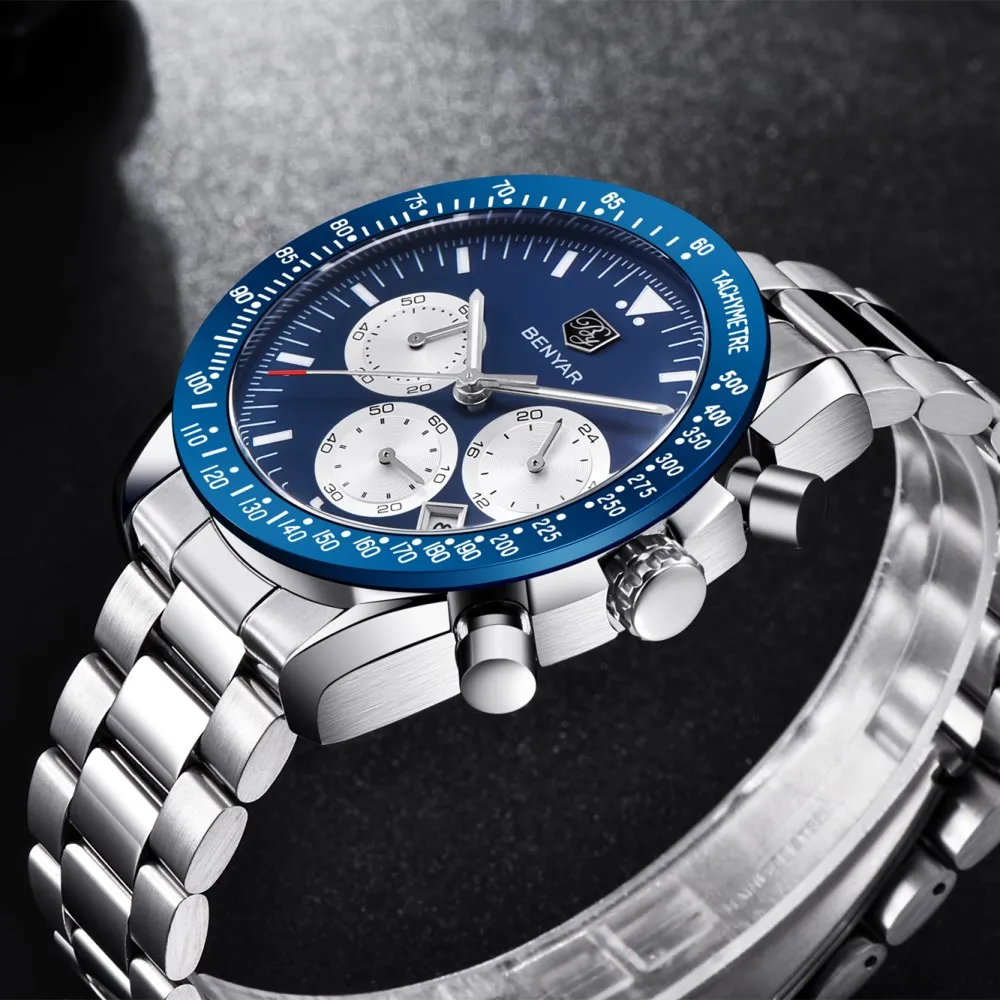 Product Name: BENYAR marka męska Sport chronograf ze stali nierdzewnej pasek zegarek kwarcowy zegarek wodoodporny biznes zegarek moda zegar zegarki dla człowieka