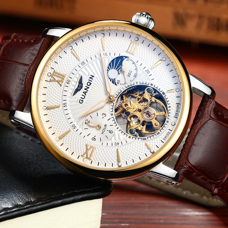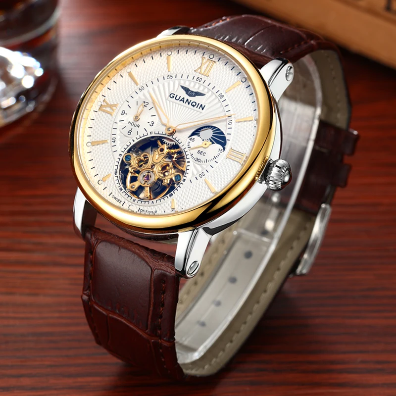 Product Name: GUANQIN męskie zegarki Top marka luksusowe Tourbillon automatyczny zegarek mechaniczny mężczyźni dorywczo mody skórzany pasek szkielet zegarek