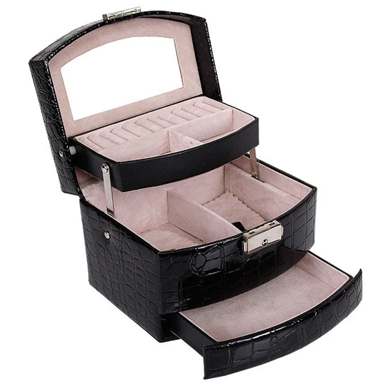 Special Offer Gorąca sprzedaż automatyczne skórzane pudełko z biżuterią trzy do przechowywania z warstwową konstrukcją pudełko na kolczyki damskie Ring organizer na kosmetyki trumna do dekoracji Discount 13% Today!