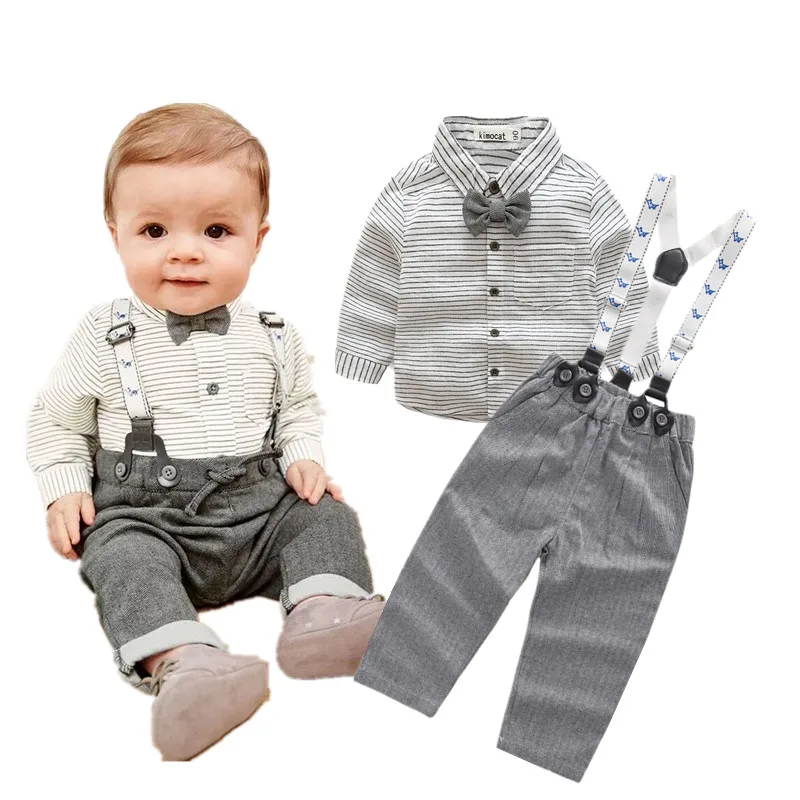 Product Name: Noworodek ubrania dla dzieci odzież dla dzieci dżentelmen baby boy szara koszula w paski + kombinezony moda baby boy ubrania noworodka ubrania