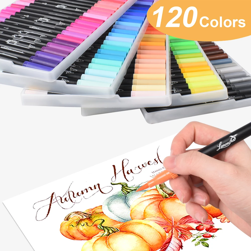Product Name: 120 kolory podwójna końcówka marker pędzle do akwareli długopisy Fineliner wskazówka dla sztuki kolorowanie szkicowanie kaligrafii Manga dostaw sztuki