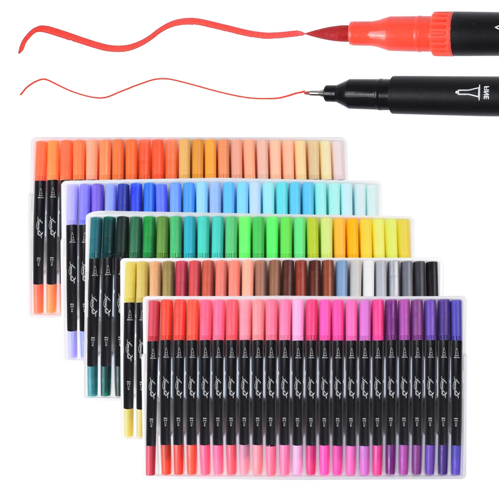 . (Zniżka 30%) Skup Tanie 120 kolory podwójna końcówka marker pędzle do akwareli długopisy Fineliner wskazówka dla sztuki kolorowanie szkicowanie kaligrafii Manga dostaw sztuki Cena.