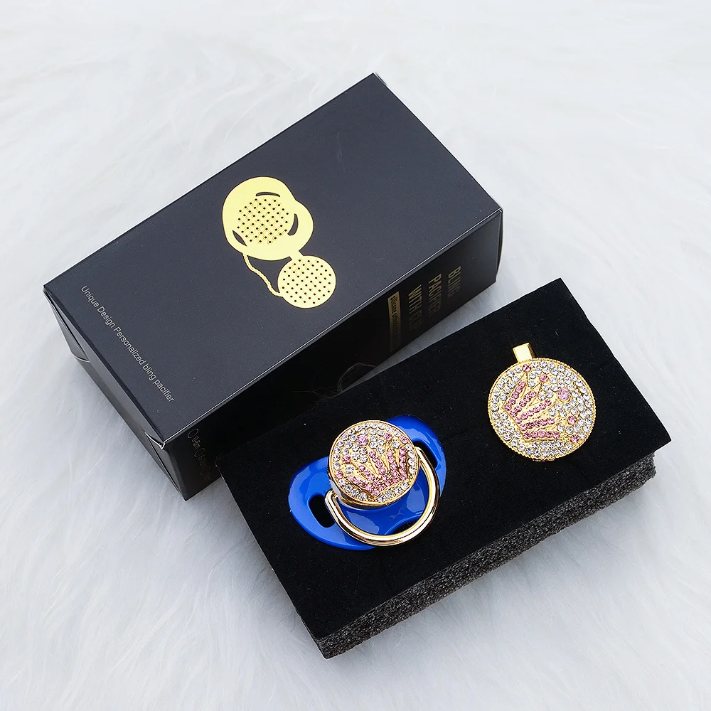 Product Name: MIYOCAR bling unikalna konstrukcja złota różowa korona smoczek i zestaw klipsów BPA bezpłatny sgs pass bezpieczny uchwyt do smoczka APCG