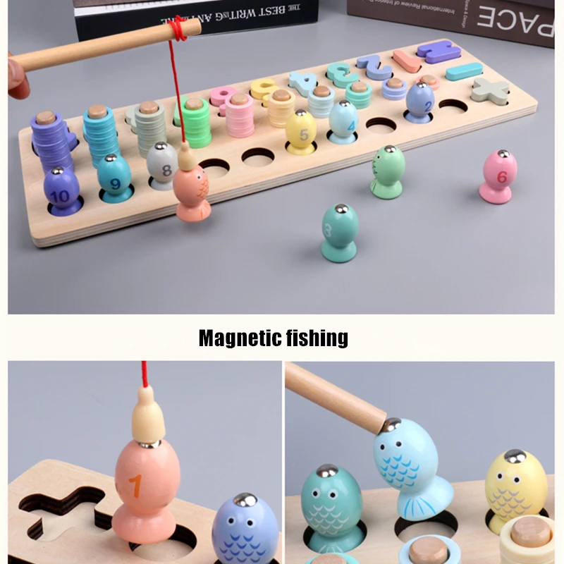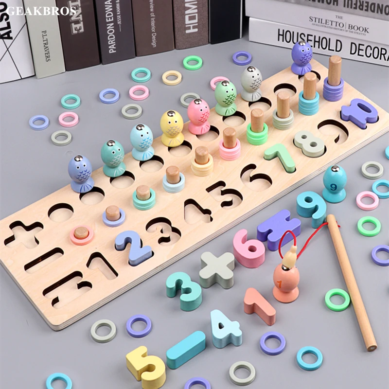 Special Offer Dzieci w wieku przedszkolnym drewniane zabawki montessori magnetyczna gra z rybkami liczba geometryczne dopasowanie dzieci wczesna edukacja nauczanie zabawka matematyczna Discount 32% Today!
