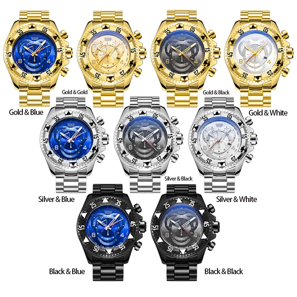 Product Name: TEMEITE Relogio Masculino Top marka luksusowe złoty Big Dial męska zegarki kwarcowe zegarek wodoodporny mężczyzna wojskowy zegarek Dropship