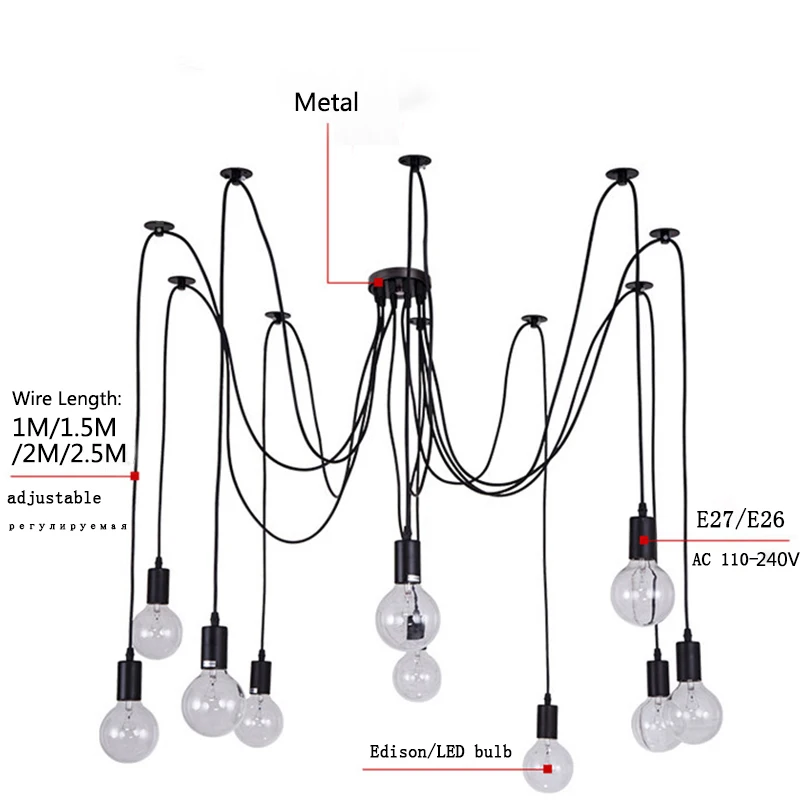 . (Zniżka 42%) Tanie Nowoczesny duży pająk przemysłowy czarny lampa wisząca w stylu vintage Loft led 14 głowic E27 światła wiszące do salonu restauracje kuchnia Cena.
