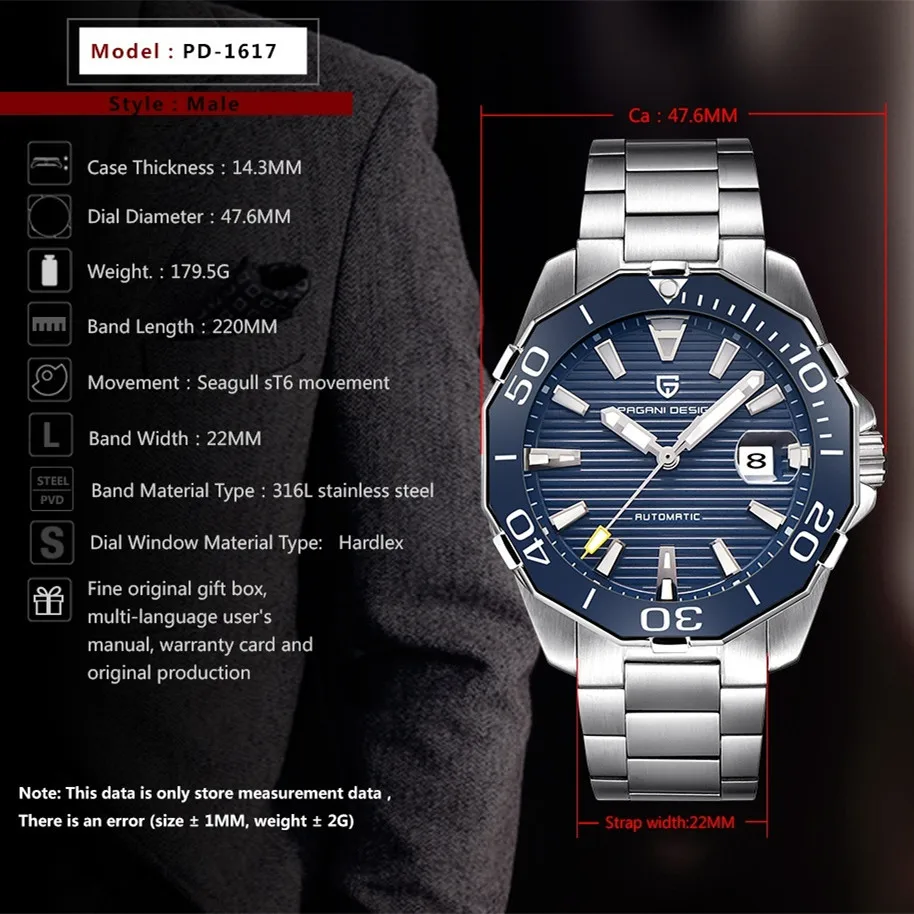 Product Name: 2019 nowy marka PAGANI projekt 1617 męska wojskowy Sport mechaniczne zegarki wodoodporna stal nierdzewna Top marka luksusowy męski zegarek