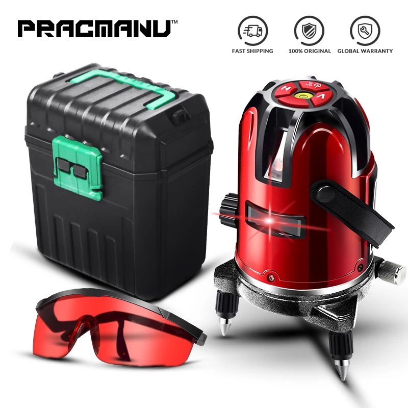 Special Offer PRACMANU 5 linie 6 punktów poziom lasera automatyczny samopoziomujący 360 pionowe i poziome stopni pochylenia obrotowy LD 635nm tryb zewnętrzny Discount 50% Today!