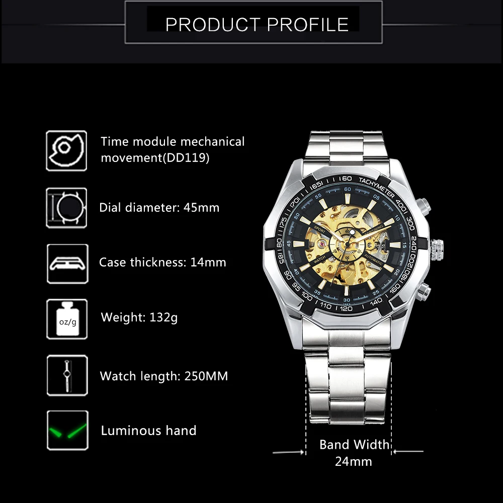 Product Name: Zwycięzca oficjalny Vintage męskie zegarki Top marka luksusowy automatyczny zegarek mechaniczny mężczyźni miedziane stalowe pasek szkielet zegarek armia