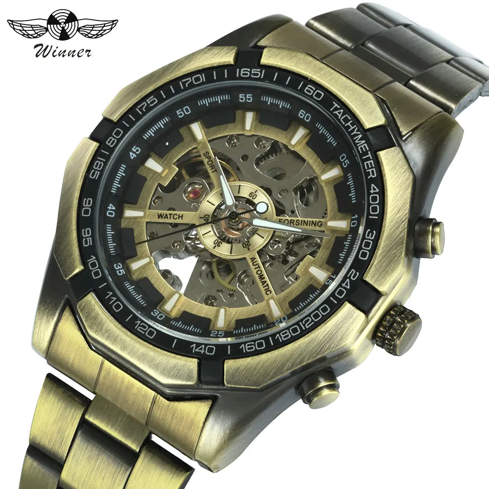 . (Zniżka 81%) Skup Zwycięzca oficjalny Vintage męskie zegarki Top marka luksusowy automatyczny zegarek mechaniczny mężczyźni miedziane stalowe pasek szkielet zegarek armia Najtaniej Cena.