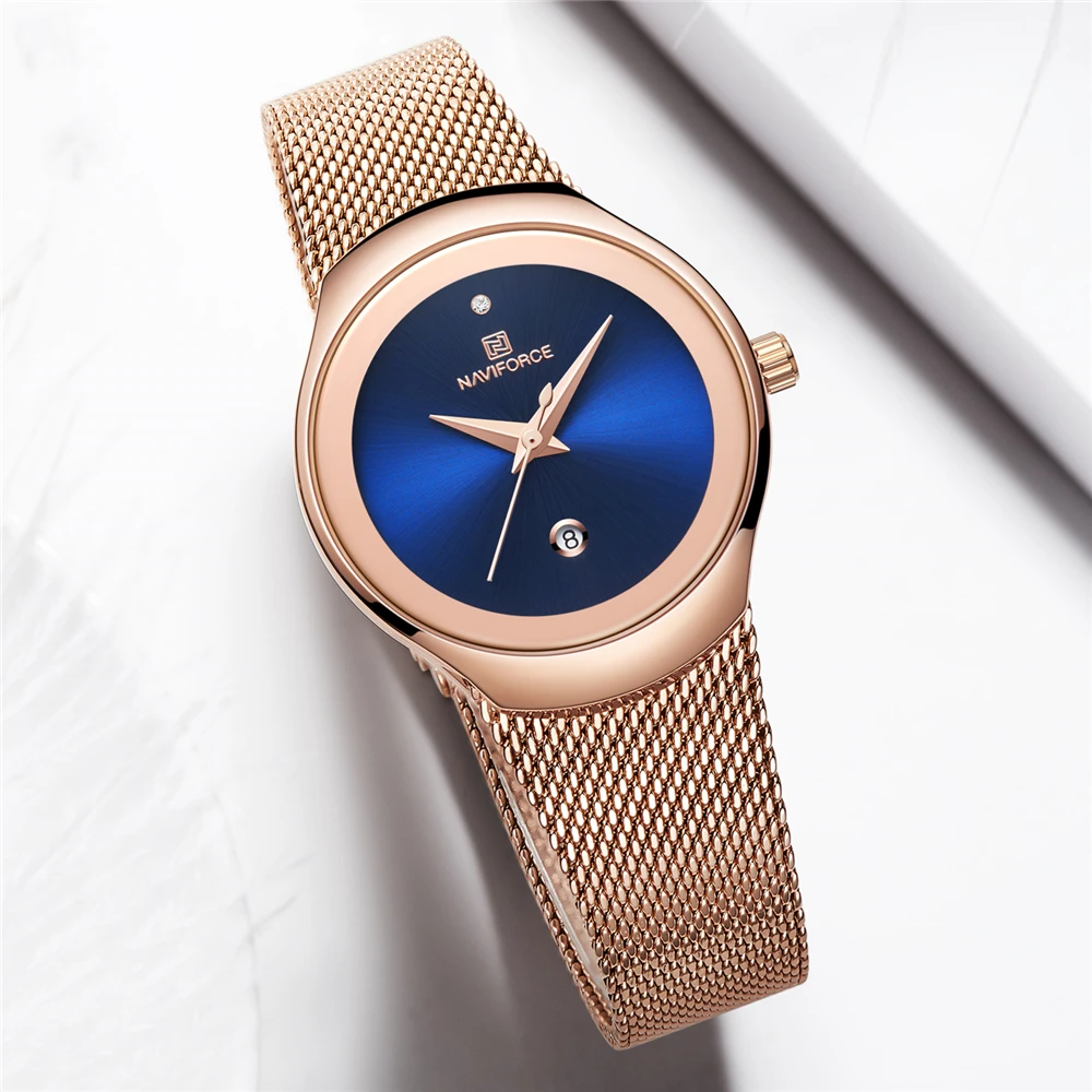 Product Name: NAVIFORCE zegarki kobiety super cienki Sliver siatki ze stali nierdzewnej Top marka luksusowe Casual Ladies Wrist Watch Lady Relogio Feminino